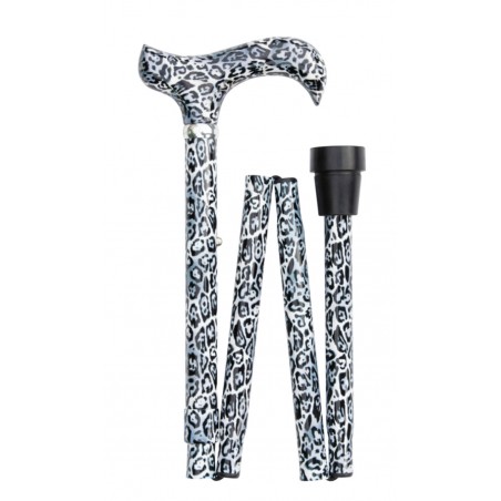 Associez style et sécurité avec cette canne pliante réglable au motif léopard des neiges. Réglable de 82 à 92 cm, elle offre un appui fiable grâce à sa poignée derby ergonomique et son embout caoutchouc antidérapant. Conçue en aluminium léger et solide, elle se plie en quatre sections pour un transport facile. Son collier chromé et son imprimé animal chic en font un accessoire aussi pratique qu’élégant.
